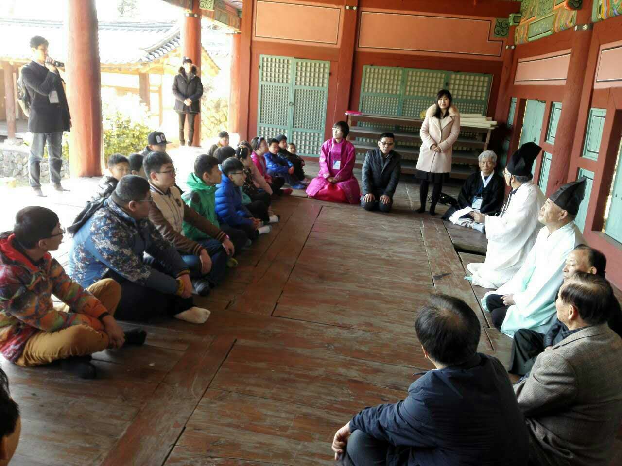 由本院组织的寒假韩国礼学游学营已于2016年2月12日(农历正月初五)精彩启程。“游走、聆听、修习、感悟、成长”是本次游学营的宗旨。本次游学孩子们在甘川文化村游走;昌善洞美食街观光;梵鱼寺静心;聆听太平洋的风声;海东龙宫寺养气;密阳乡校修习。游学期间,孩子们跟随韩国礼学第一人郑景柱教授学习感受韩国传统礼仪,以礼修身,以礼养心。以礼修身,身正不阿;以礼养心,心定神和。心定神和,性情坚韧,志存高远!愿孩子们通过此次游学,得以学会修身养心,坚韧性情,处事谦和有度,受益终生。